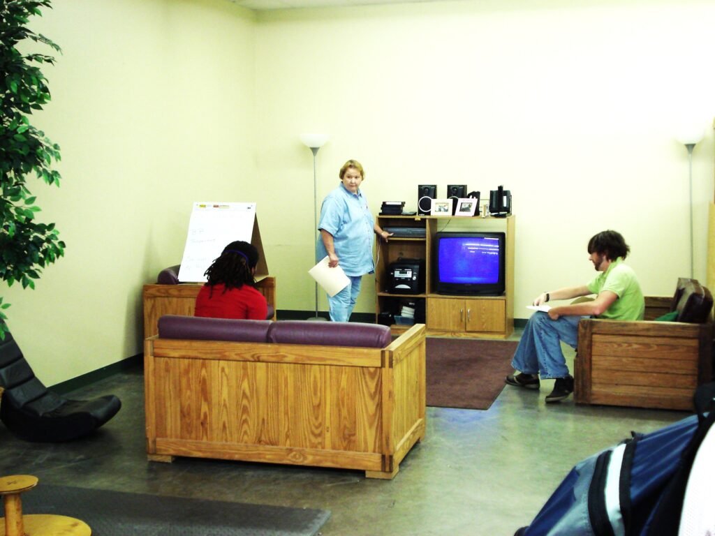 トレーニングセンターでの一角には、「リビング」での過ごし方が練習できる場所がありました。ASDの方は、その特性から生活全般の場面ごとに「期待される行動」を練習する必要のある方がいます。ここでは、「リビングでどのように過ごすことが期待されているのか」を練習しています。また、このトレーニング施設の中では、「喫茶店で休憩をする」「トレーニングジムを利用する」など様々な場面を設定してトレーニングが出来るようになっていました。